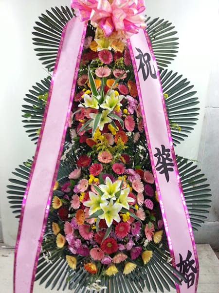 국내 대표 제약회사에서 주문해 주신 결혼식 축하 3단 화환 입니다.